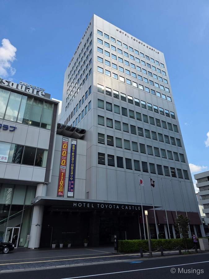 The work event I’m attending over these four days is hosted in Toyota City, about an hour by train east of Nagoya. Like many other built-up cities, there are hotels that are near to the train station – Toyotashi Stn in this case – and the property I have been staying at this several days is Hotel Toyota Castle.