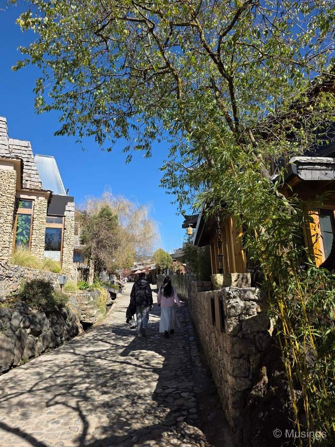 Our first stop of the day after lunch at a Lijiang local restaurant was Yuhu village, and about 20 minutes drive away. The village sits at the foot of the famed Jade Dragon Mountain we’d be visiting tomorrow Day 04, and visitors are brought up part of the way as the village sits on an inclined hill. The village has a large number of exquisitively built stone houses that houses many retail and dining establishments. Near the top of the hill we took another electric cart that brought us to Yuhu Lake where visitors could ride ponies around a large pasture. I found the village itself pretty meh though the riding pasture and lake was much more interesting. The DJI Neo 2 came out for me to fly again, and this time I got it to do a large number of routines, and also some manual flying.