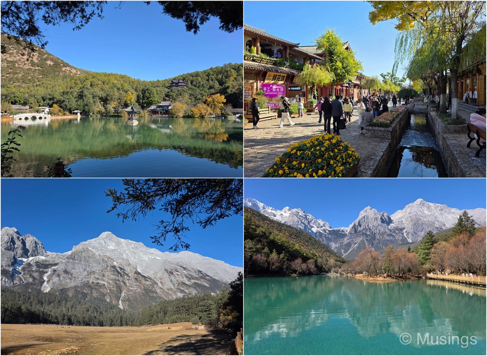 Black Dragon Pool (~1 to 2 hrs) [blog post here]: lovely pools set in a traditional Chinese garden area. There are also paddle boats that you can ride, and there are spots where you can take pictures with the Jade Dragon Snow Mountain in the backdrop.