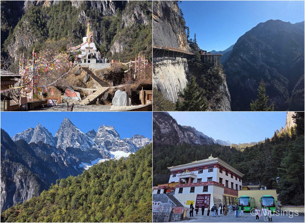 Yading Nature Reserve (whole day) [blog post here]: our third itinerary highlight of this trip. Lots (and lots) of walking involved. We were again visiting in a non-ideal season so access to selected lakes with mirror like waters were closed off. We spent most of our time walking Luorong Grassland, a vast expansive area between the mountains, and were treated to amazing views, albeit in winter. Pro-Tip #17: the boardwalk walk does not involve ascents for the most part, but it’s nonetheless physically demanding. Do be mentally prepared, as once you get started, know that you’d have to walk back the same way (or around the circuit) later on to get back to the bus pick-up point. The end point for us was Gongga Lake, since further access beyond that was closed. The at our end point cafe sells cup noodles, which were a real treat in cold weather and after walking for > 1 hr.