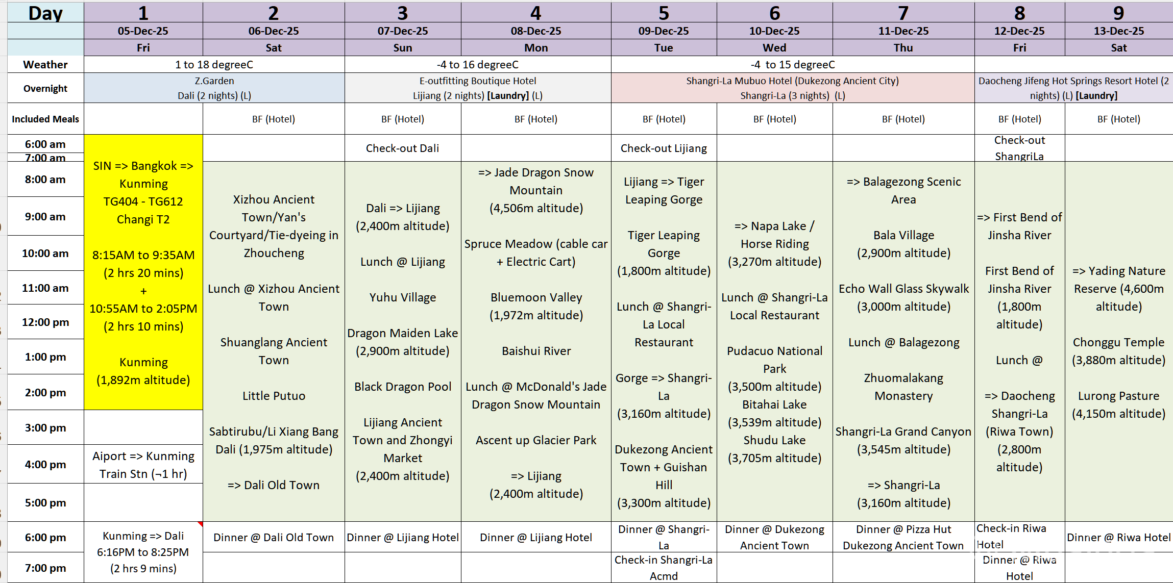 Preparation Pro-Tip #11: do not overbuy herbal remedies and O2 cannisters when your tour guide/leader brings you to your first shop for these supplements. Buy enough for just 1 day first, then see however one adjusts. O2 cannisters are available everywhere. We had western meds prescribed from home, and we didn’t finally need the (pricey) herbal remedies. For the four of us, I was fine without O2 at altitude, the two kids needed a little, and the wife more. 2 cannisters for us to share were more than sufficient for the day up Jade Dragon Snow Mountain.